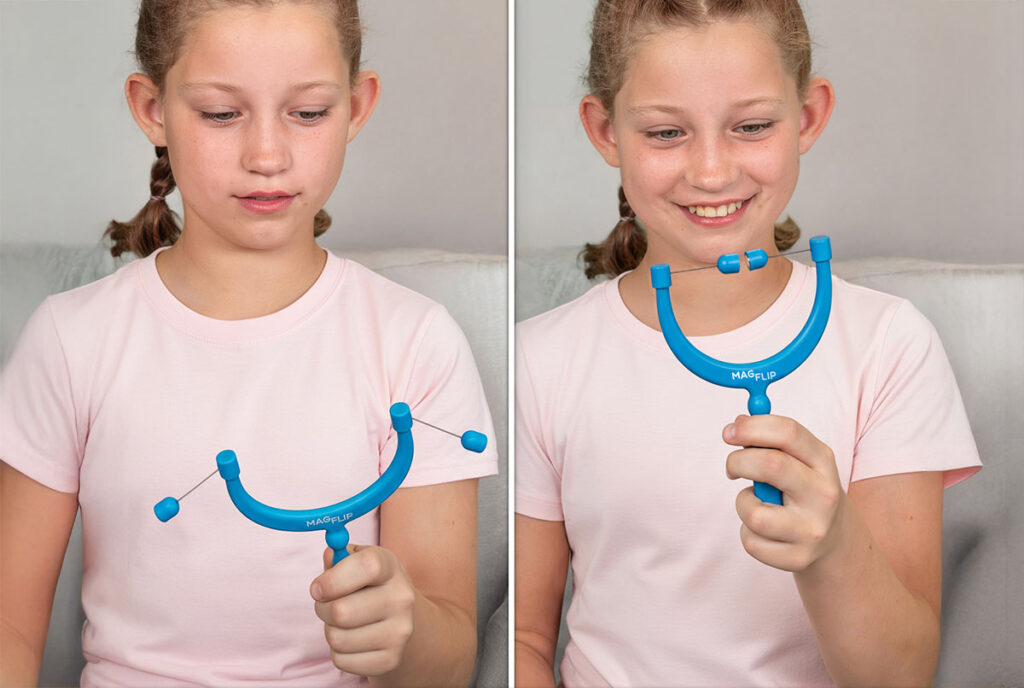 - Kreativität & Lernen: Neue Tricks auszutüfteln erfordert Kreativität. Kinder entwickeln eigene Methoden, probieren verschiedene Bewegungen aus – ein tolles Ventil für ihren Erfindergeist. Der Magnetismus weckt die Neugier: „Wie funktioniert das eigentlich, dass die Magnete Schweben?“ So weckt der MagFlip Interesse an Physik und Mechanik.